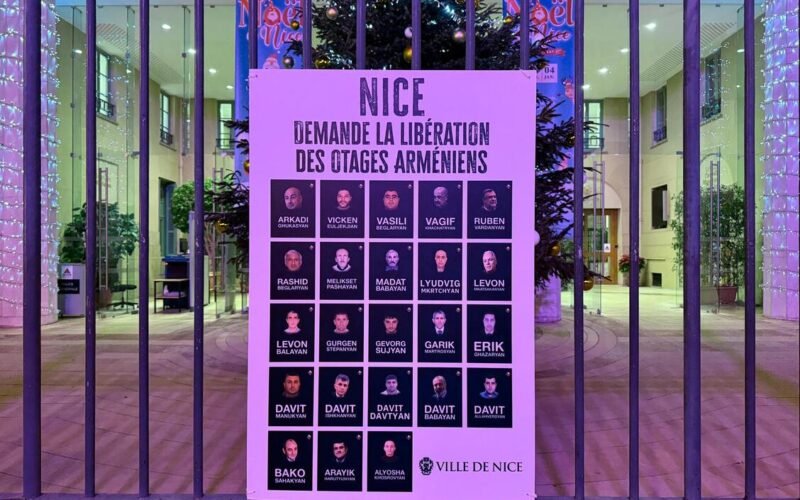 Depuis 2023, 23 otages arméniens sont toujours détenus en Azerbaïdjan. En soutien, Christian Estrosi a organisé ce mercredi 17 décembre 2025 un rassemblement, et a demandé qu’on appose une affiche avec le visage des otages sur les grilles de la mairie.